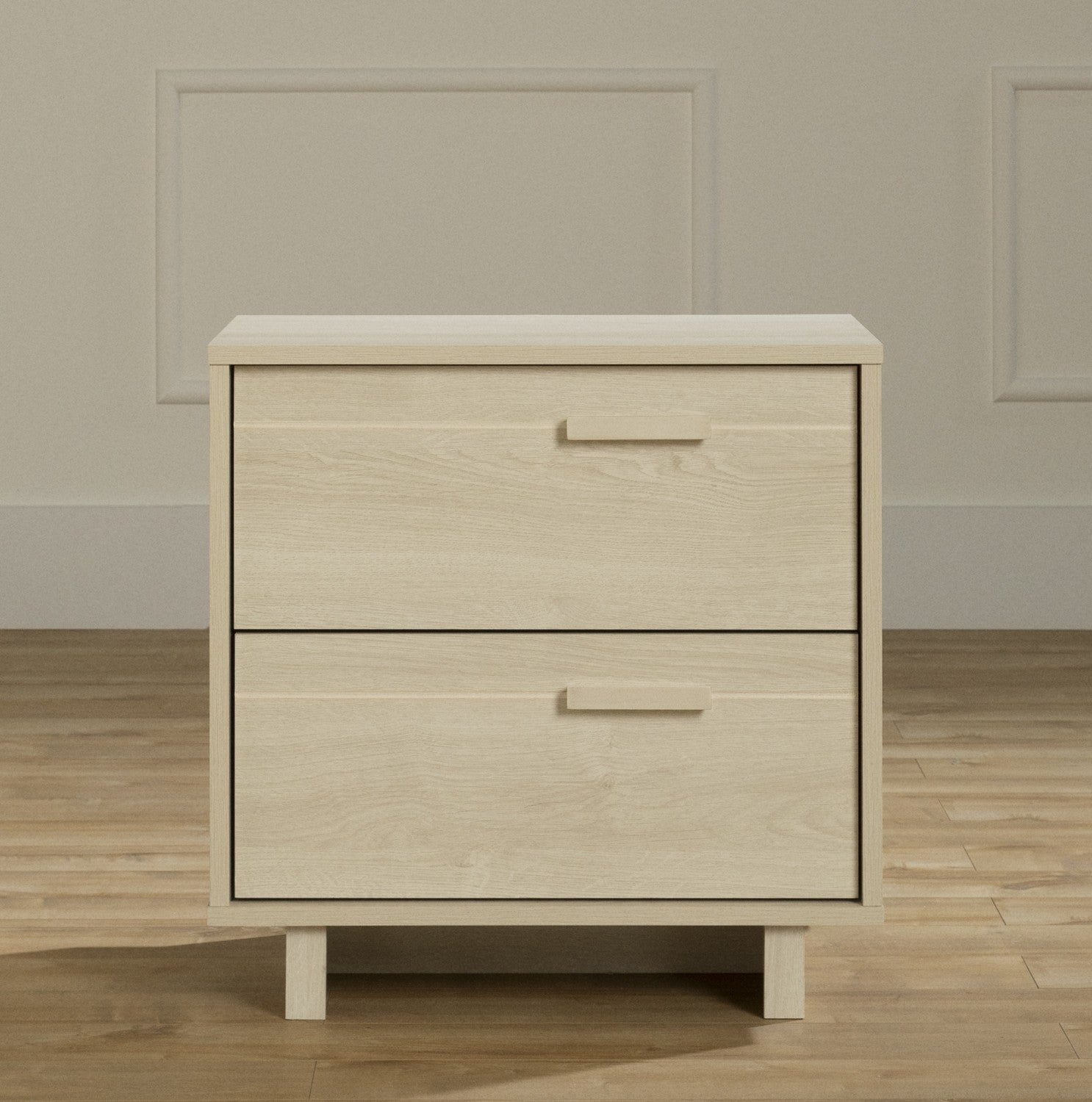 This bedside table is designed with children in mind. With its two drawers, it provides the necessary space for storing pajamas, storybooks, and toys. The top? Perfect for a night light to keep the monsters away.