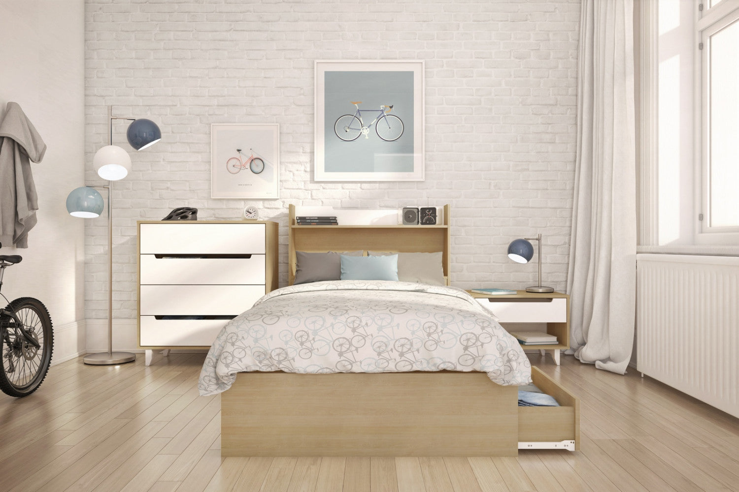 Nordika Twin Bookcase Headboard - White/Natural Maple