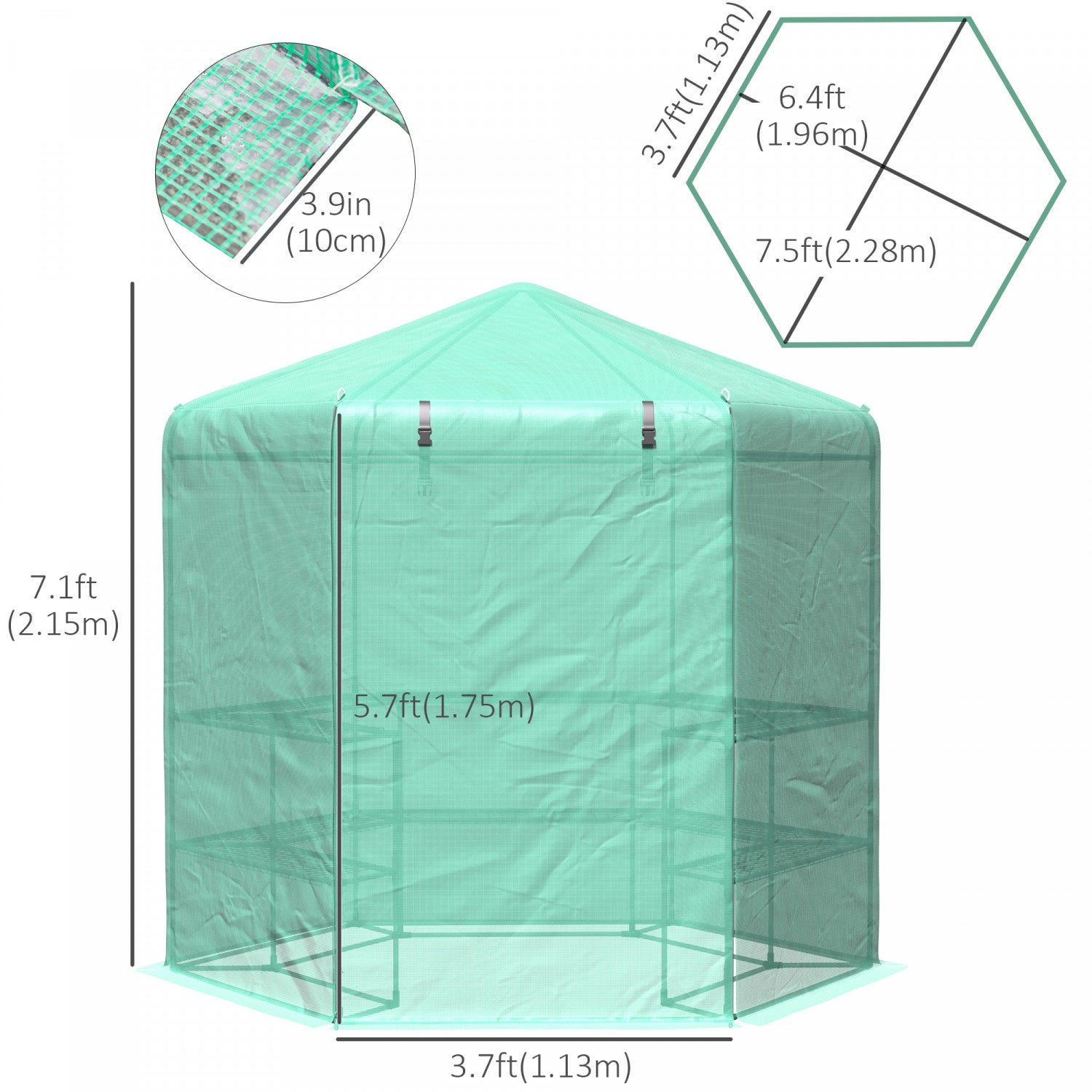Outsunny 7.5' X 6.5' Walk-in Greenhouse With 3-tier Shelves, Hexagonal Portable Green House With Roll-up Door, Garden Hot House For Plants Herbs Vegetables, Green