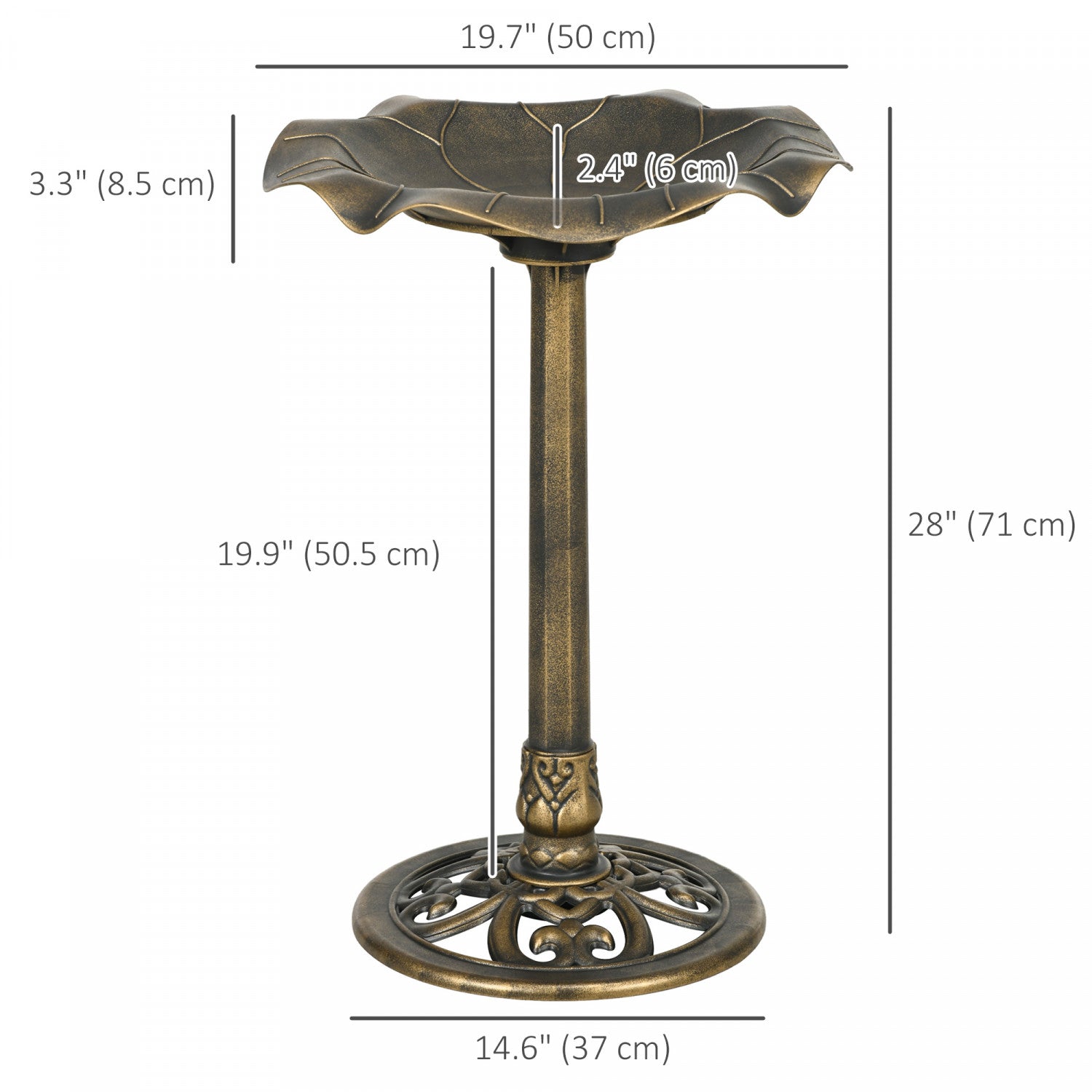 Outsunny Bird Bath For Outdoors, Birdbath With Lotus Leaf Basin, Bronze