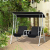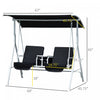 Outsunny Double Outdoor Swing Chair 2 Person Covered Swing Porch Swing W/ Pivot Table And Storage Console, Black