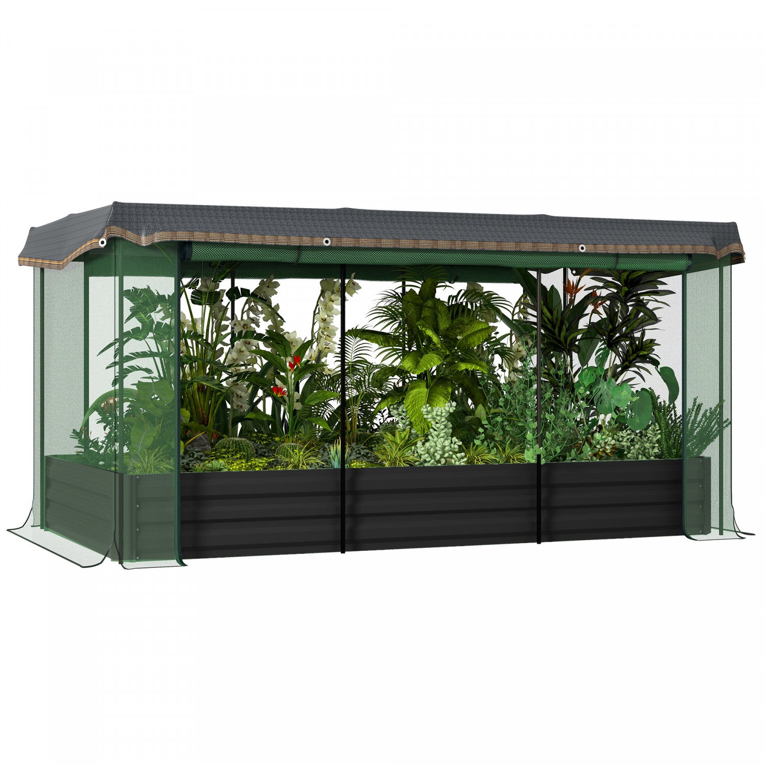 Outsunny Galvanized Raised Garden Bed With Crop Cage And Shade Cloth