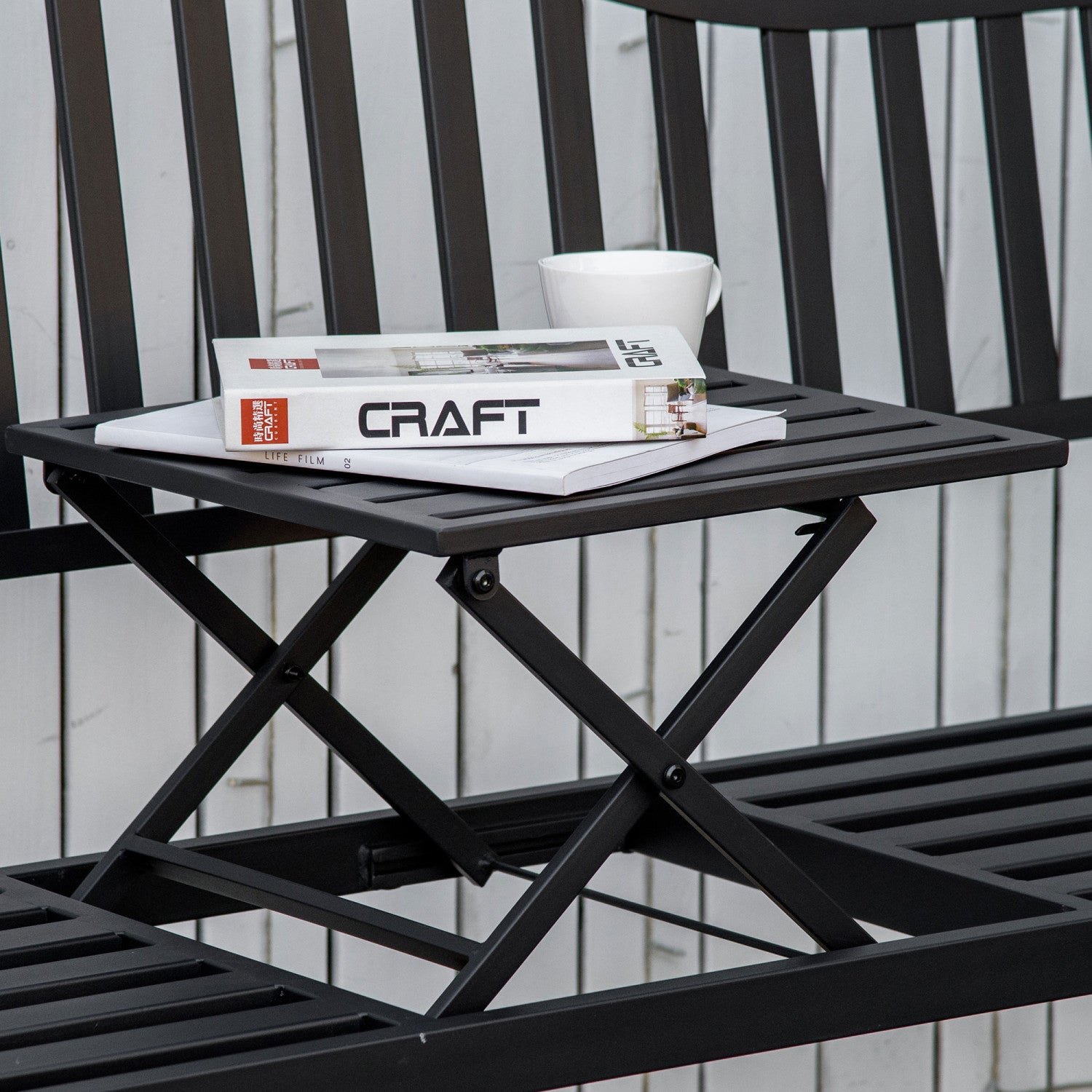 Outsunny Outdoor Bench With Liftable Middle Table, Patio Loveseat, Black