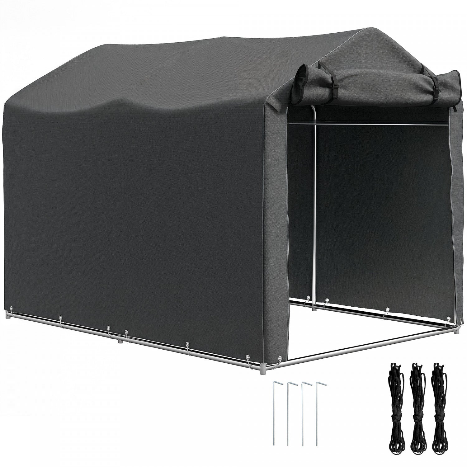Outsunny Outdoor Shelter, Motorcycle Tent W/roll-up Zipper Door, Dark Grey