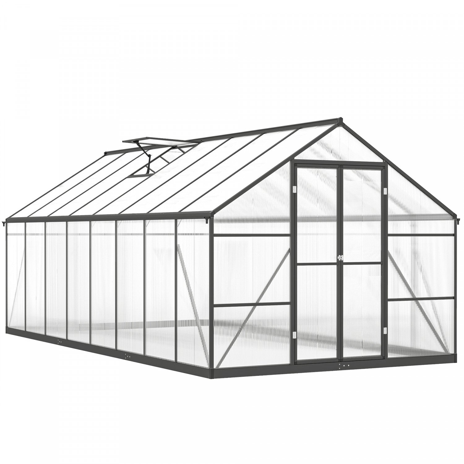 Outsunny Polycarbonate Greenhouse, Aluminum Walk-in Green House, Dark Grey
