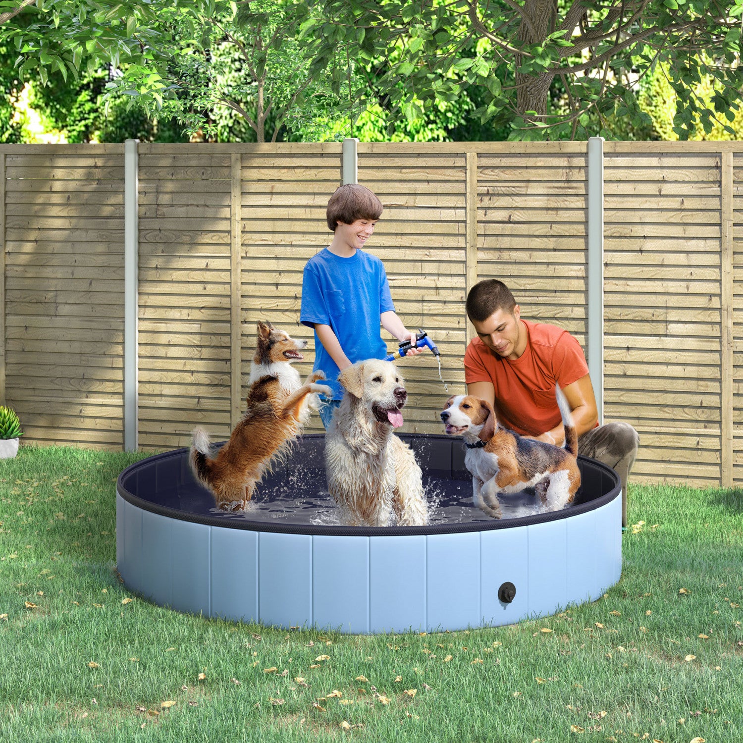 Pawhut Φ63" Folding Dog Pool For Large Dogs, Portable Pet Kiddie Swimming Pool, Outdoor/indoor Puppy Bath Tub With Nonslip Bottom For Dogs & Cats, Blue
