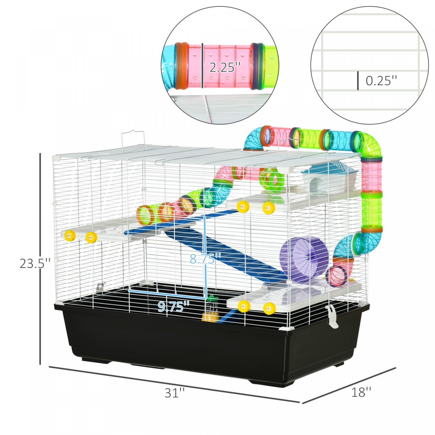 Pawhut 31" Large Hamster Cage, Small Animal House, Multi-storey Gerbil Haven, Tunnel Tube System, With Water Bottle, Exercise Wheel, Food Dish, Ramps, Black
