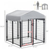 Pawhut 4' X 4' X 4.5' Large Outdoor Dog Kennel Steel Fence With Uv-resistant Oxford Cloth Roof & Secure Lock