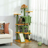 PawHut 54" Cat Tree, Cat Tower for Indoor Cats with Scratching Posts, Cat Condos, Bed, Platforms, Ramp, Toy Ball, Cat Activity Center, Green