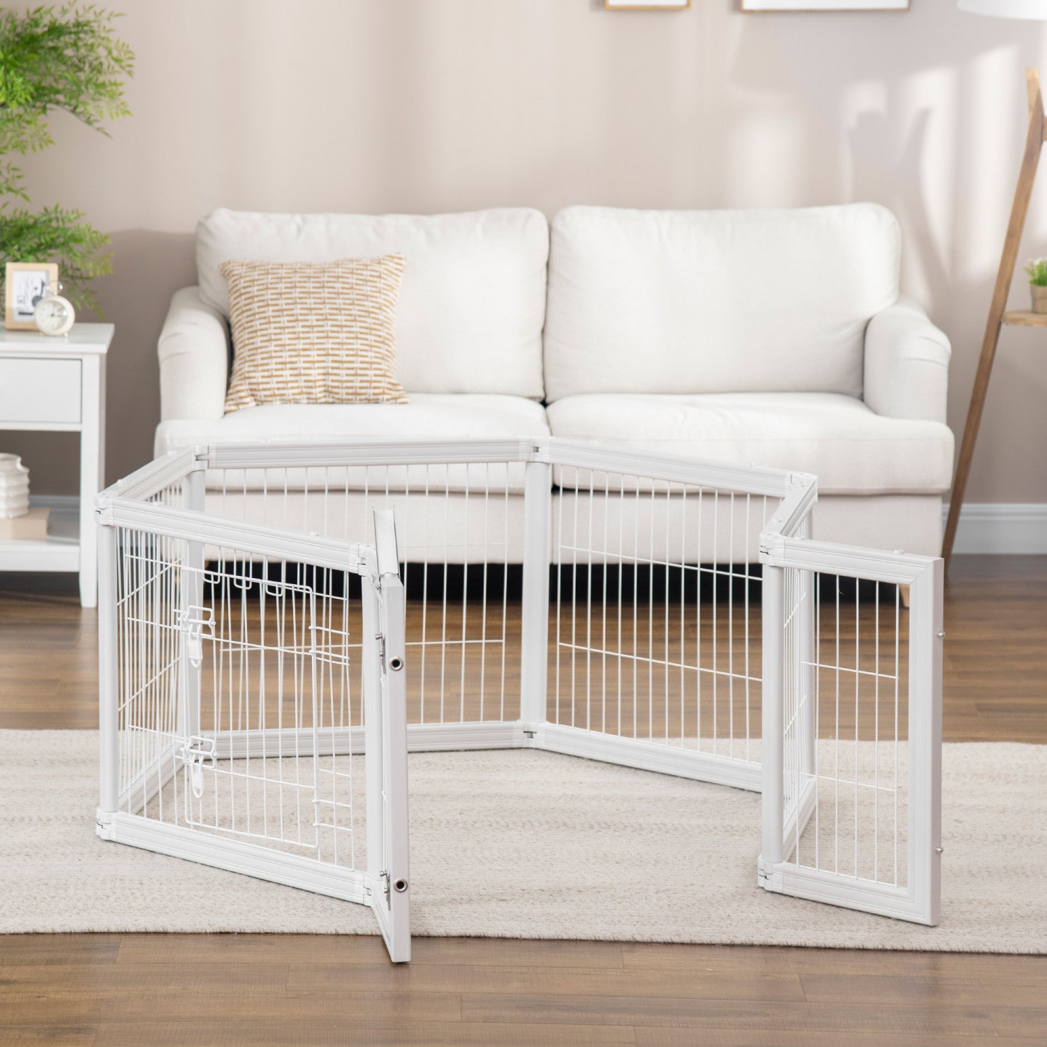 Pawhut Dog Playpen, 6 Panels 24.5" Heavy Duty Pet Playpen, Foldable Dog Exercise Pen With Door Indoor Outdoor, White