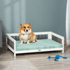 Pawhut Elevated Dog Bed, Wooden Raised Pet Sofa, Portable Cat Lounge With Soft Cushion, Washable Cover For Medium Dogs And Cats, White Blue