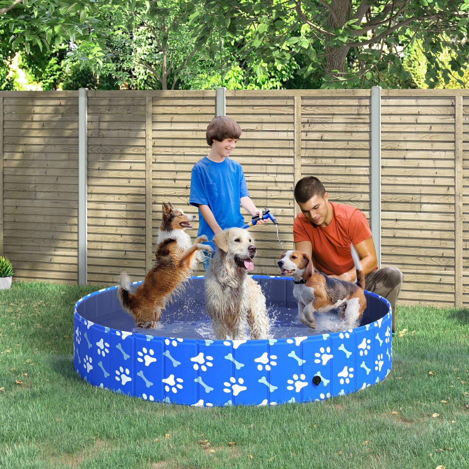 Pawhut Folding Dog Pool Portable Pet Kiddie Swimming Pool, Outdoor/indoor Puppy Bath Tub With Nonslip Bottom For Dogs & Cats, (Φ63", Blue)