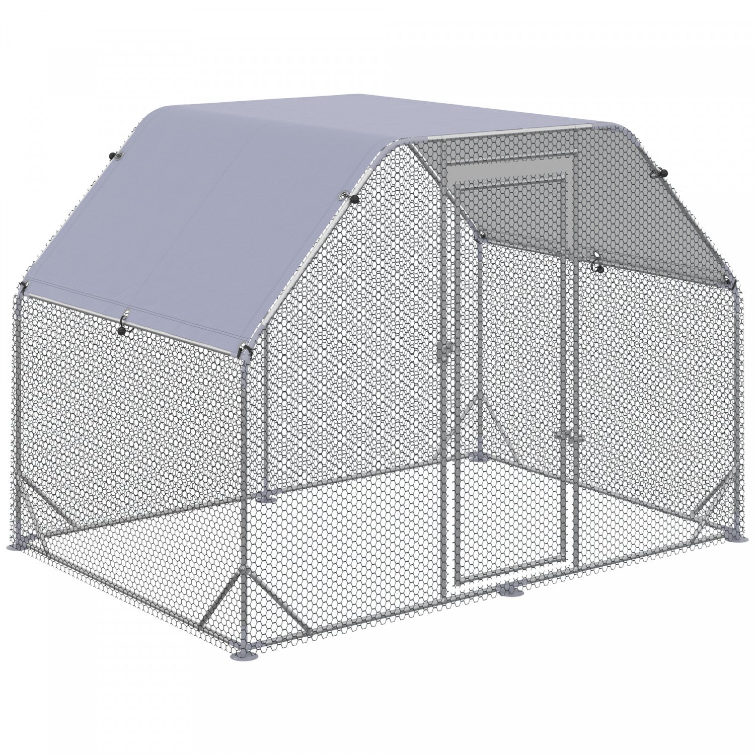 Pawhut Galvanized Large Metal Chicken Coop Cage Walk-in Enclosure Poultry Hen Run House Playpen Rabbit Hutch With Cover For Outdoor Backyard 9.2' X 6.2' X 6.5' Silver