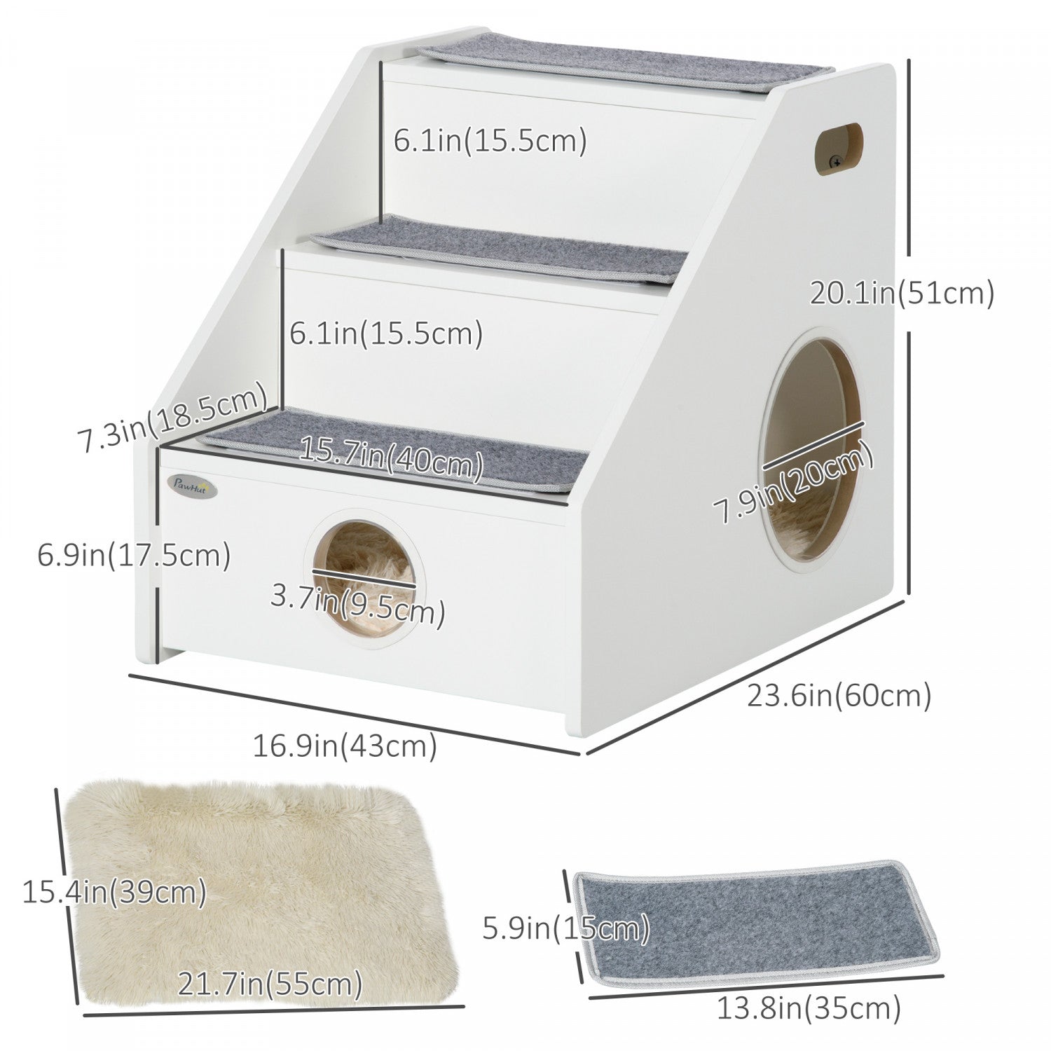 Pawhut Pet Stairs For Miniature Dogs Hidden House, Cat Steps For Couch High Bed Sofa, Portable Puppy Stairs For Climbing With Handles, Non-slip Carpet, Side Holes For Entry, White