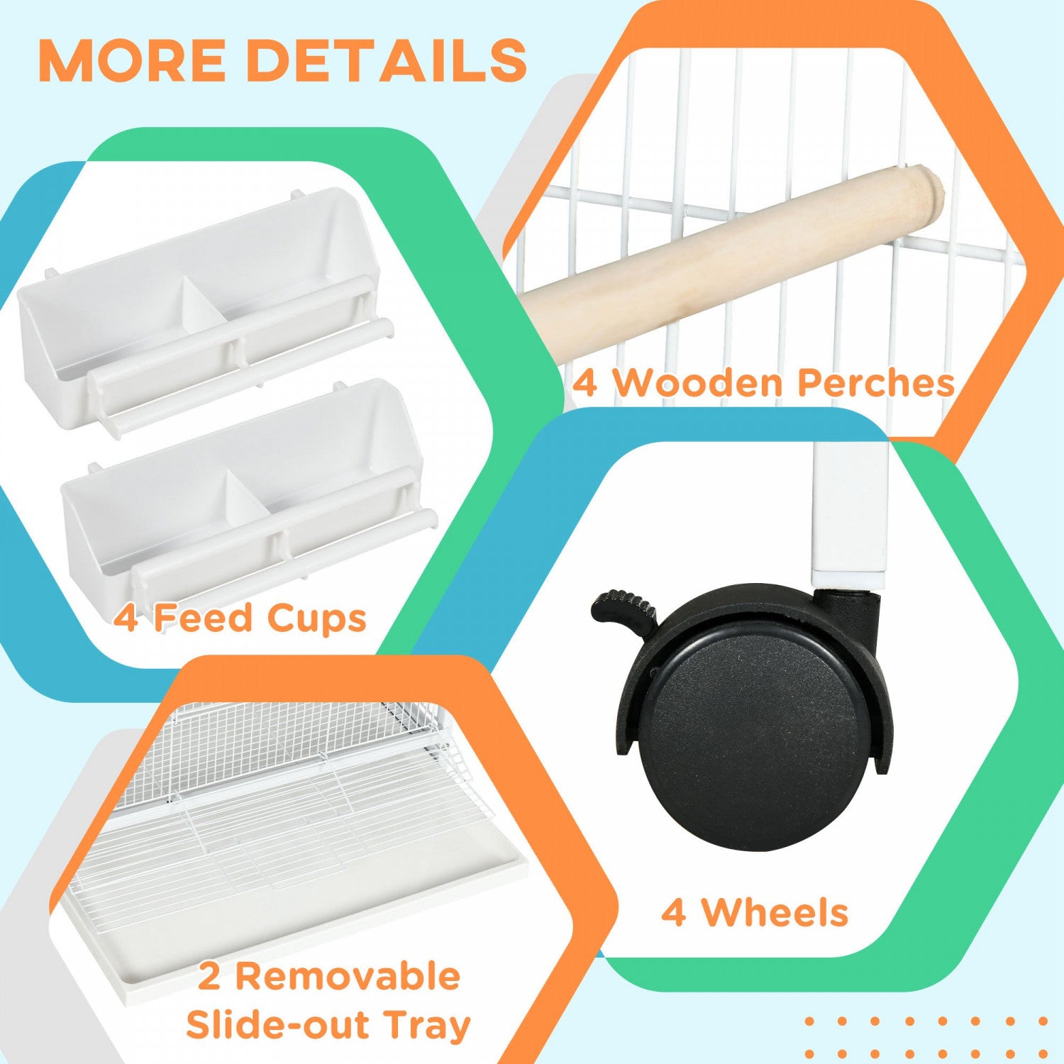 Pawhut Wrought Metal Bird Cage Feeder With Rolling Stand Perches Food Containers Doors Wheels 67" H, White