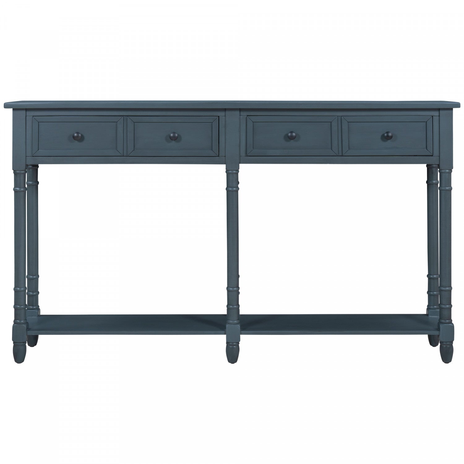 The console table adds rustic charm and practical storage to any living space. Featuring two spacious drawers and a wide bottom shelf, this classic accent piece offers the perfect balance of form and function. Crafted from solid wood and mdf with a distressed finish, it delivers strength and durability. Elegant tapered legs, round knobs, and clean lines create a high-end look that suits entryways, foyers, or living rooms. Assembly is simple—just attach the legs and shelf with included tools and instructions.