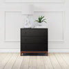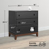 The Prepac Nordik 3 Drawer Nightstand features a Black & Cherry finish, measuring 16"D x 26.5"W x 26.75"H, with three smooth-gliding drawers and a sturdy top supporting 25 lb, blending style and functionality. Crafted from durable, non-toxic materials, it’s perfect for any decor.