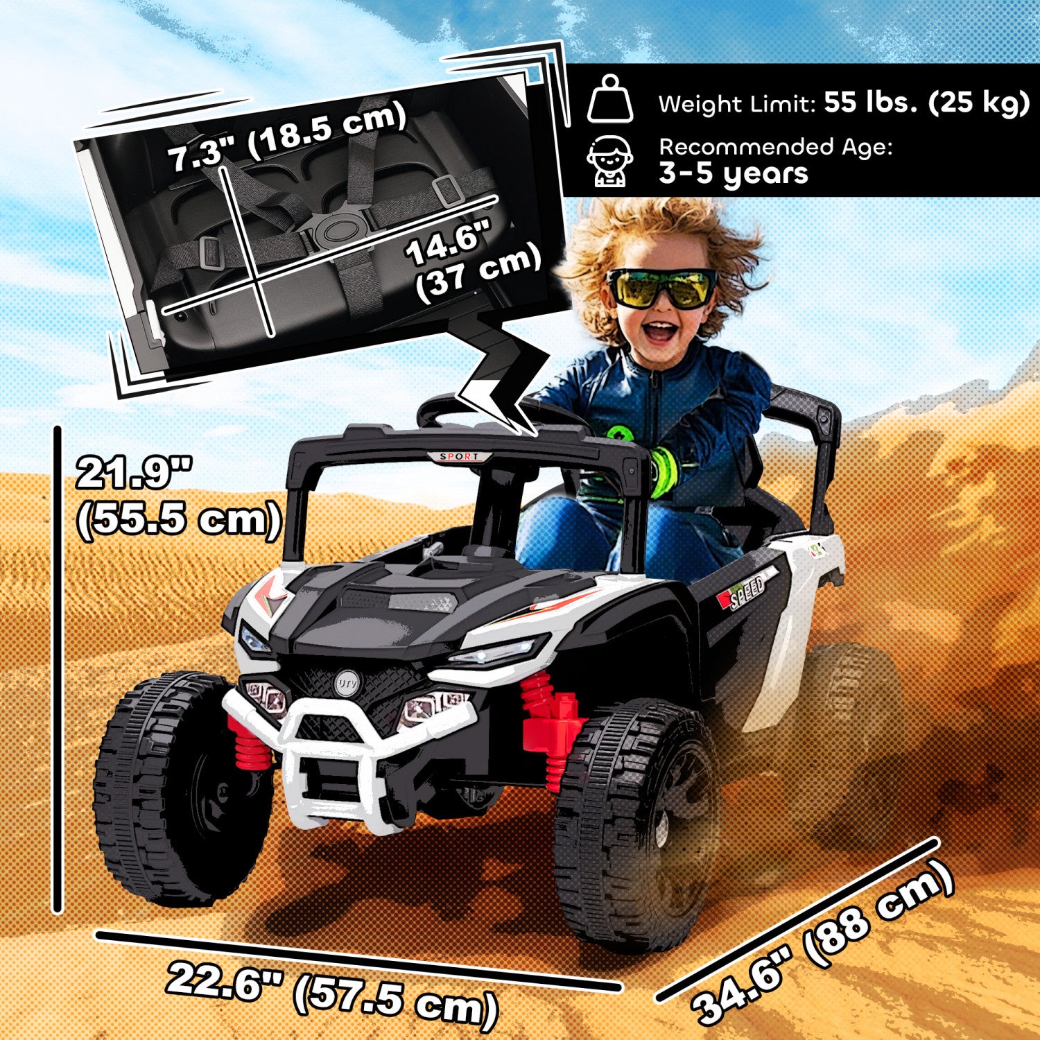 Qaba 12V Kids Ride On Car Truck with Dual Motors, Rear Suspension, Battery Powered Electric Vehicle with Remote Control, LED Lights, Music, Horn for 3-8 Years Boys Girls, White