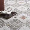 This beautiful shag area rug features an exquisite Geometric Diamond design and a light cream, orange, and brown pile.