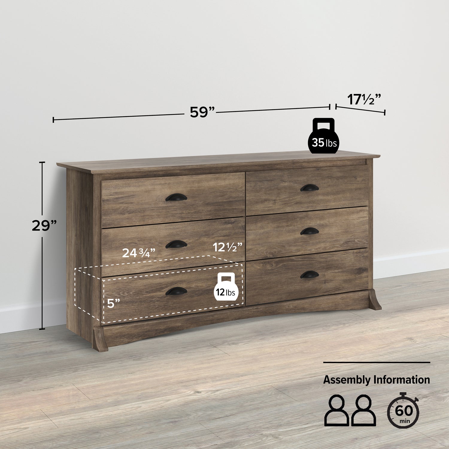 | Additional Information | Product Weight Limit: Per Drawer: 12 lbs ; On top: 35 lbs |
