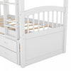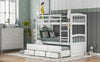 The twin over twin bunk bed maximizes floor space with built-in drawers and a pull-out trundle, perfect for guests or siblings. Crafted from durable pine wood and engineered wood in a white finish, it features full-length guardrails and a four-step ladder for added safety. This space-saving bed easily separates into a captain’s bed and standalone twin when needed—ideal for growing families or shared rooms.