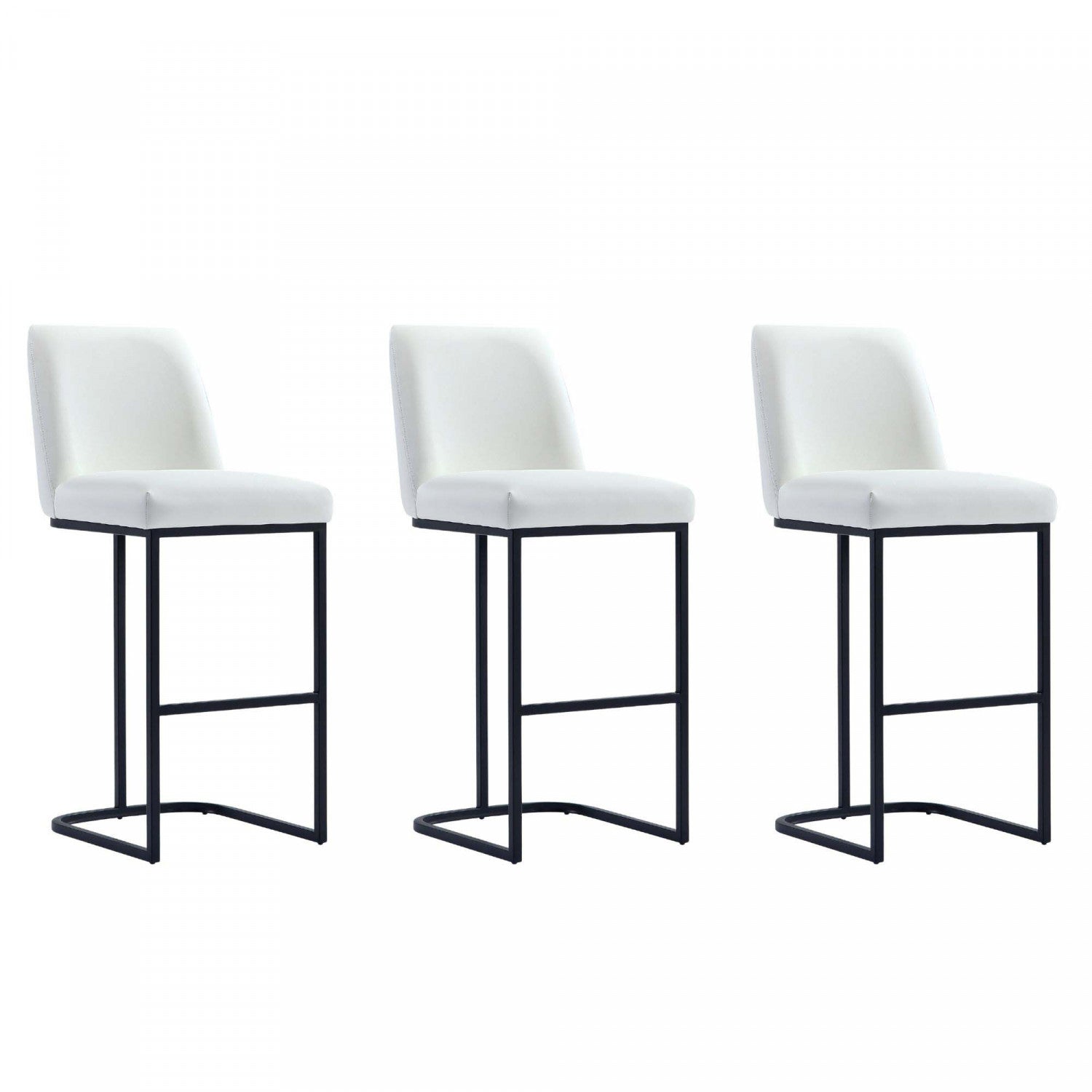 Serena Modern Metal Upholstered Barstool in White - Set of 3 Bar Stool