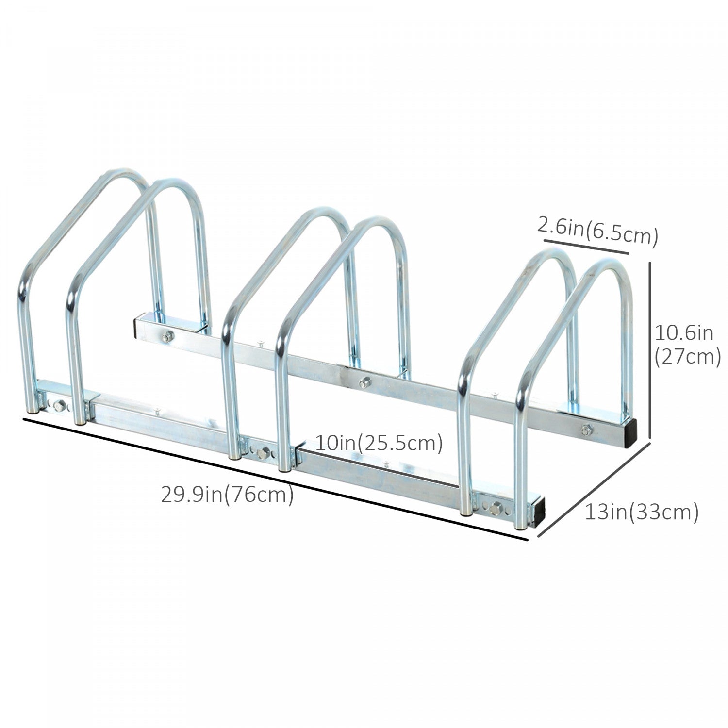 Soozier 3-bike Bicycle Floor Parking Rack Cycling Storage Stand Silver