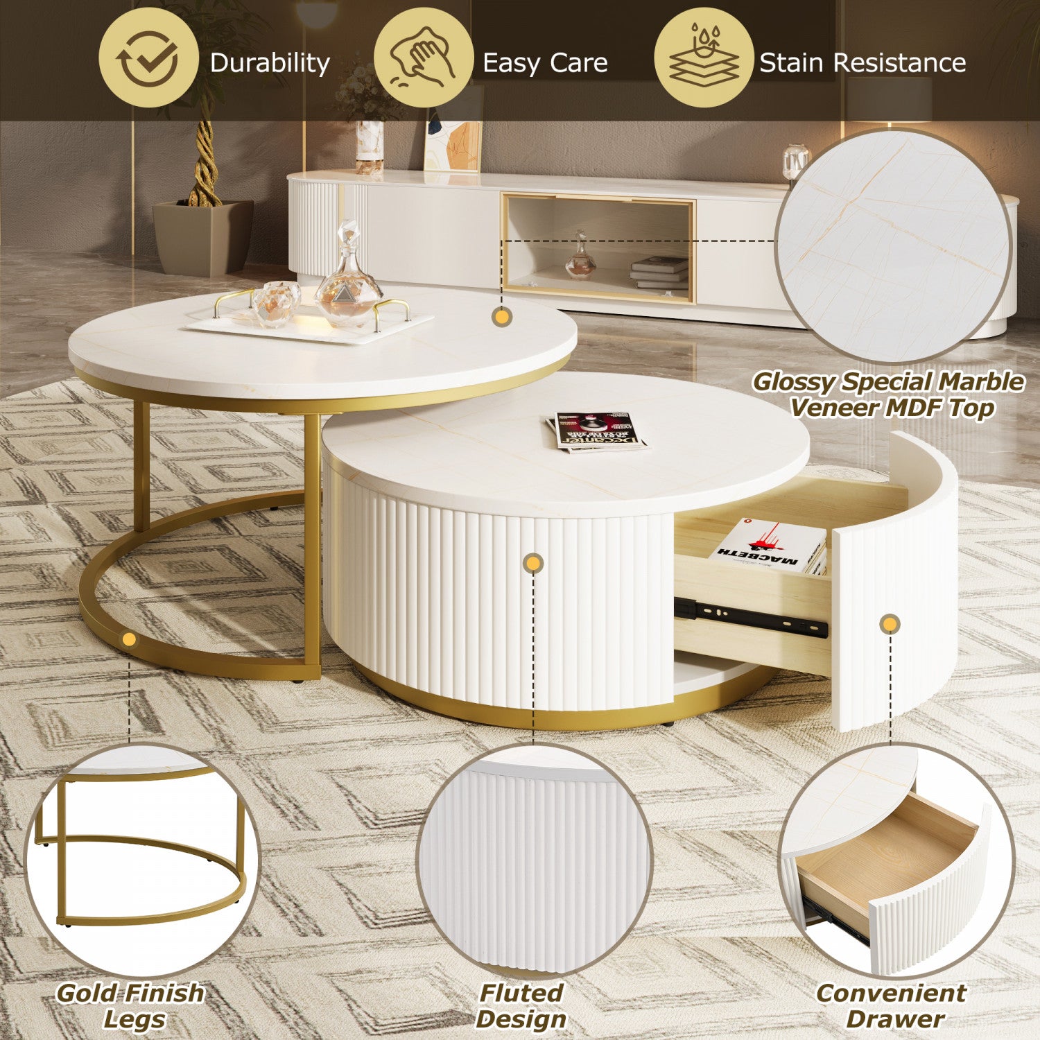 Sophia 27.6\" Modern Nesting Coffee Table With Storage Drawer, White