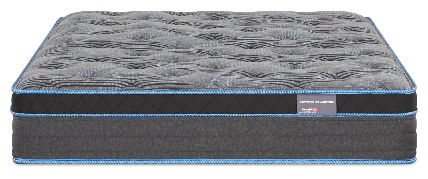 Sleep soundly on the Springwall Advance Telekon full mattress and wake up feeling restored. This firm eurotop mattress is made to support your body through the night. Exclusive advance support coils help reduce motion and give you targeted support where you need it most. Layers of firm advance foam and firm comfort foam gently contour to your shape to ease pressure and promote airflow. A cooling gel layer near the surface helps keep your sleep space fresh and comfortable. With full coil edge support, you can enjoy a strong sitting edge and more usable sleep space. Rest easy knowing your comfort is backed by a 10 year non prorated warranty.