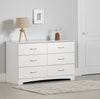 Contemporary lines and finish. This step one 6-drawer dresser has a timeless look and blends in easily with any decor. The contemporary lines are softened by the curved kick plate, and metal handles add character and value to the furniture. The neutral, modern style makes it suitable for men’s and women’s, providing plenty of storage space in this attractive piece of furniture. Practical storage and organization this bedroom furniture collection was designed just for tighter spaces! Featuring 6 practical drawers with metal handles, the dresser provides plenty of room for clothes, linens or general storage. The drawer slides are made of metal, allowing for smooth and quiet acccess.