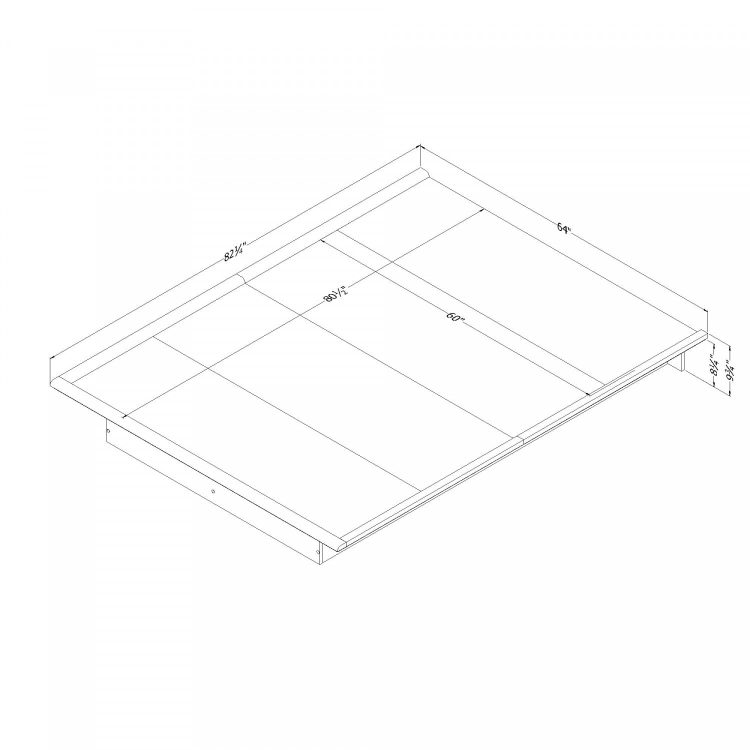 Width: 64" (162.6 cm) Height: 9.75" (24.8 cm) Depth: 82.5" (209.6 cm)