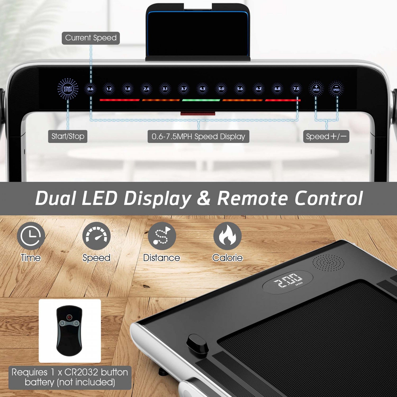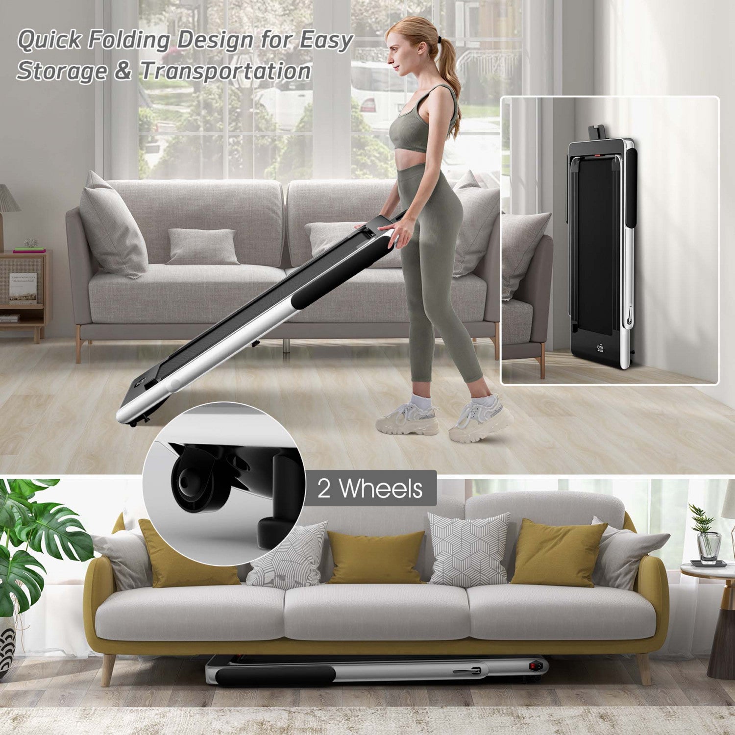 Superfit 2.25hp 2 In 1 Dual Display Folding Treadmill Jogging Machine W/app Control White