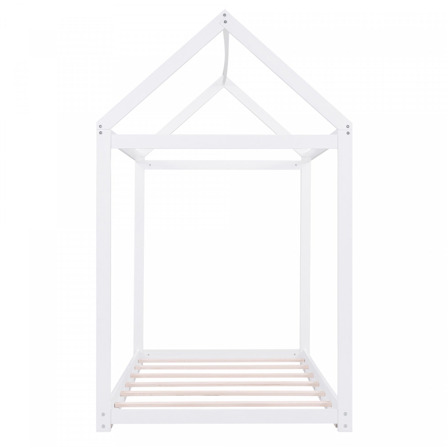 Susan Easy-clean Design Solid Wood House Bed With Roof Frame, Twin Size, White