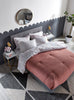 Savour the softness of this Tara full bed. The tall headboard and apron are each upholstered in an elegant, grey linen-look fabric. This soft material lightens your room while creating a cozy space you'll look forward to nestling up against. Button-tufting and square accent stitching also provide traditional touches. However, the clean-cut design and black wooden legs mean this fine slumbering space will look equally chic in a modern setting.