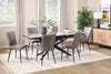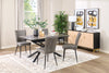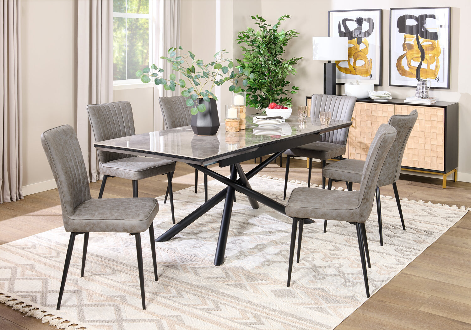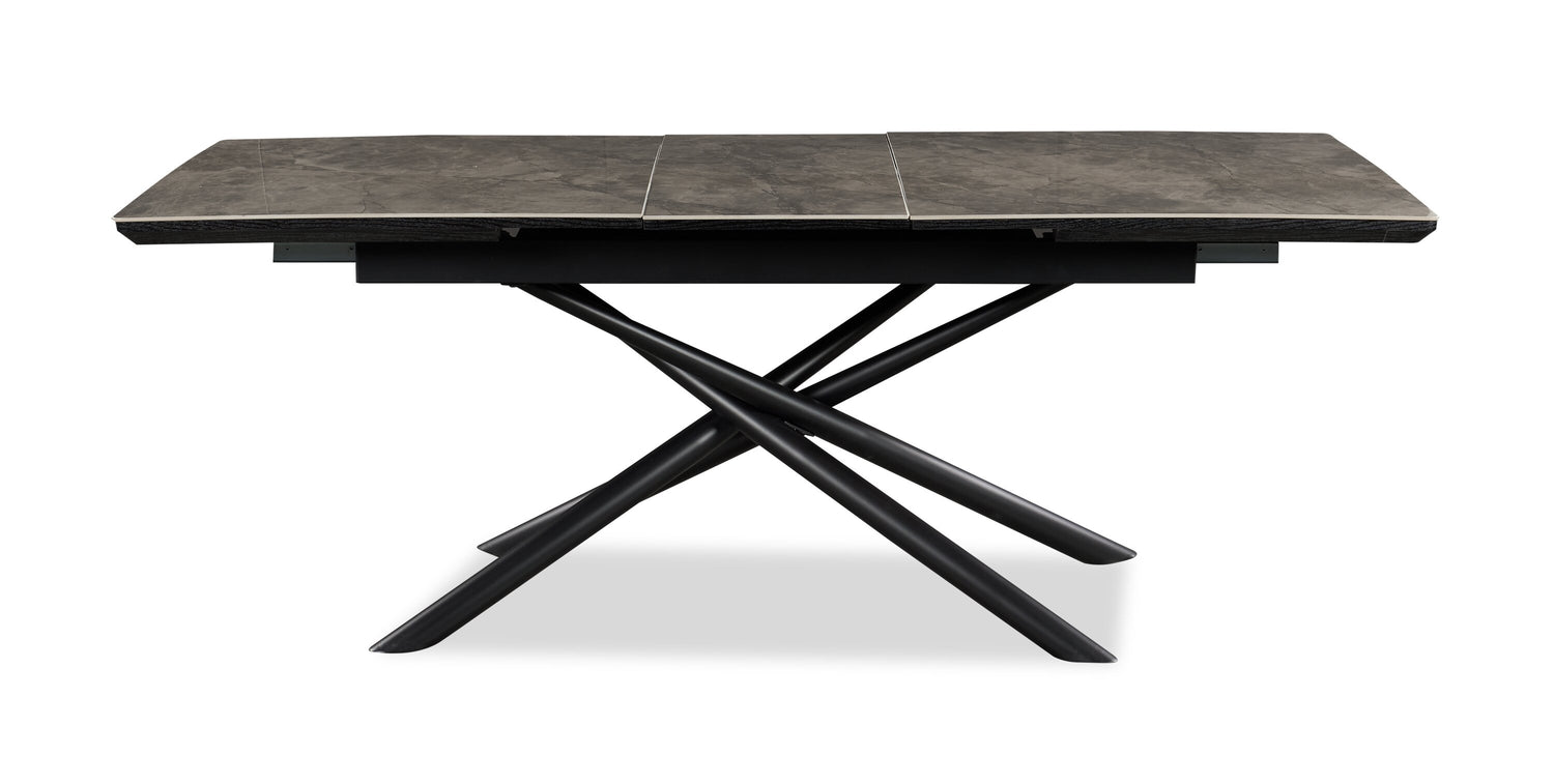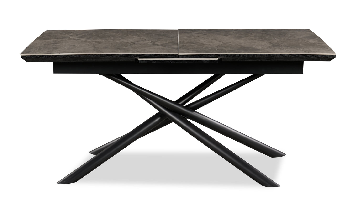 Tavo Dining Table with 63-79"W Extension, Sintered Stone & Metal, Geometric Pedestal Base - Grey/Black