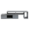Techni Mobili Expandable TV Stand will enhance your entertainment area with this asymmetrical-inspired piece of art. Finished in calming grey, this 53.5" expandable TV stand is the perfect blend of style and functionality. Easily slides open to a full length of 82.5", this piece is uniquely yours to design to accommodate your needs within your entertainment space. With two large storage drawers and four shelves to keep your media items organized and clutter-free, the versatility of this piece makes this a must-have in any home.