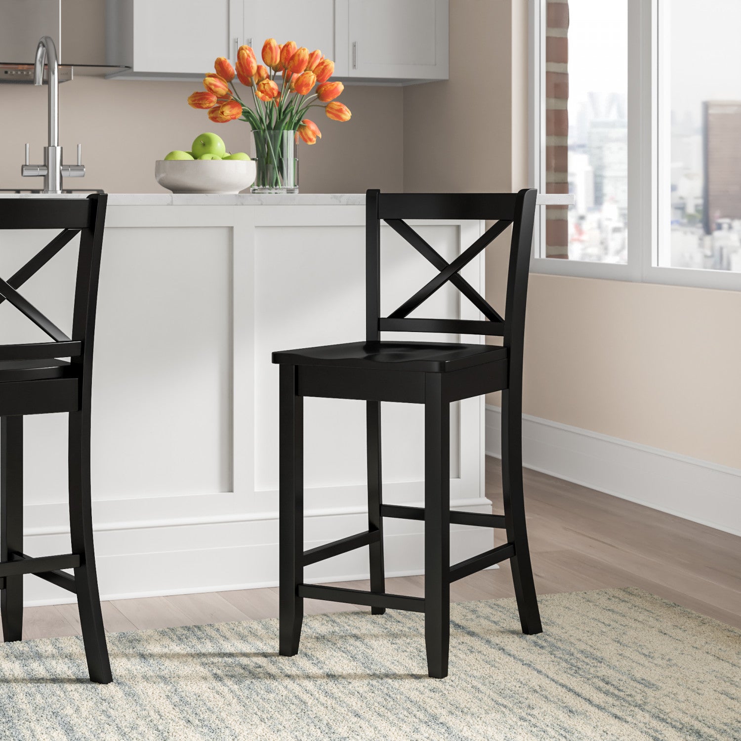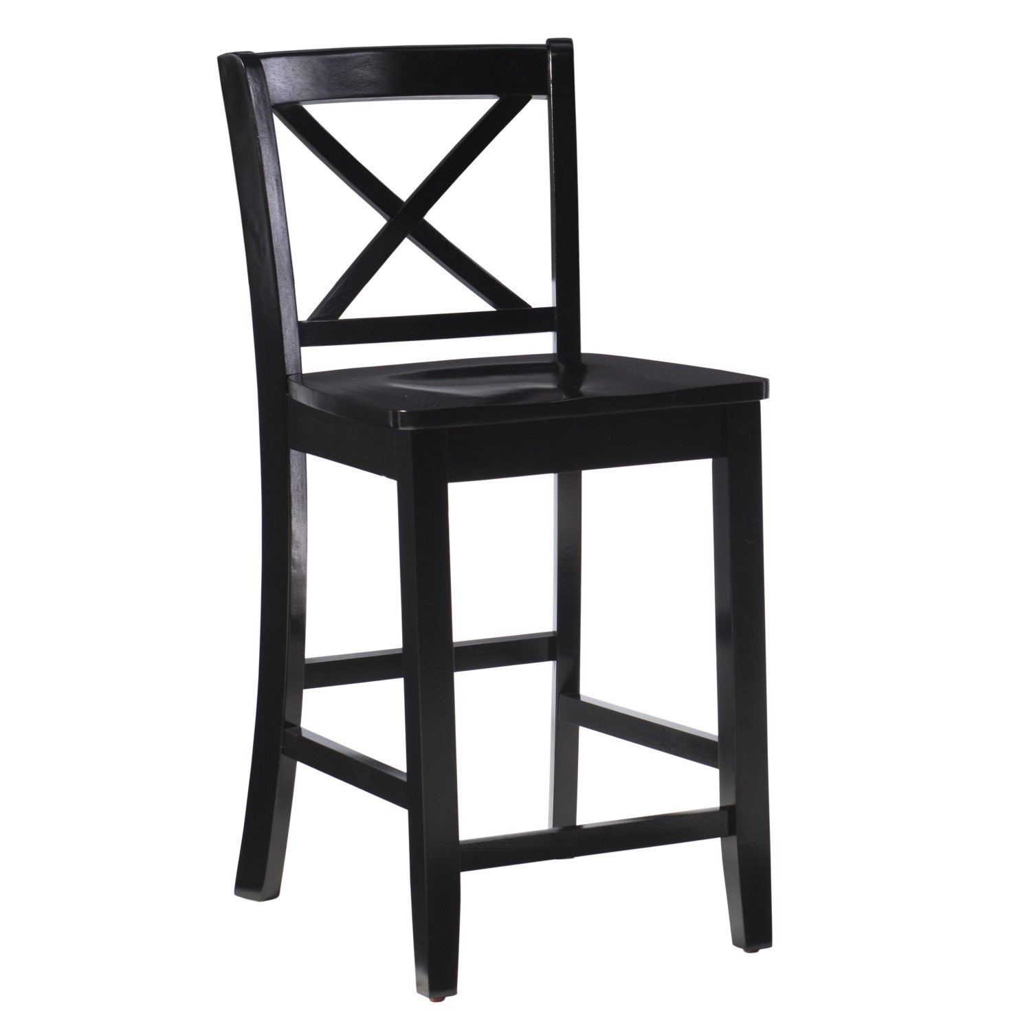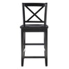 Introducing our stylish wooden counter stool, a perfect addition to your kitchen area. The x back design is timeless, crafted from high quality solid wood, making it durable and built to last. The classic design features a comfortable seat with a contoured shape, providing excellent support while you enjoy meals or drinks at your counter or bar. A rich painted black finish complements all of today's interior styles. This stool works best with counter heights of 35" to 39". Place several around your kitchen counter to make an elegant statement.