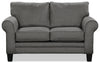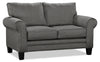 Turn your living space into a comforting and inviting area by adding this steel-coloured Tula loveseat. Soft fabric covers this piece in cool grey for a classic look you can pair with many different decor options. Plus, matching fabric piping outlines all the edges – including the rolled armrests. Each of the seat cushions are packed with high-density foam to give you a cozy place to unwind. With two accent pillows for a touch of flair, this Tula loveseat will amaze your family and friends with its elegance.