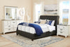 | Accent Details | A diamond-shaped pattern of button tufting and lines of shiny metal nailheads decorate the headboard. |