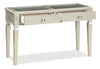 | Accent Details | Glass inset top, mirror trim and faux crystal hardware. |