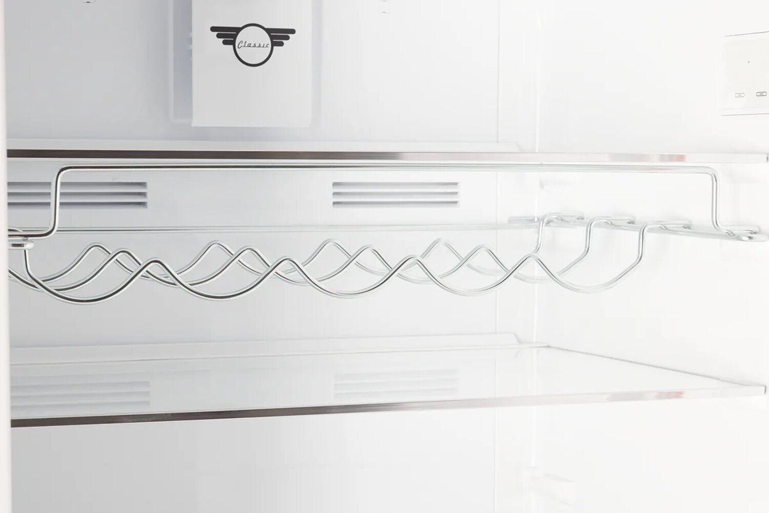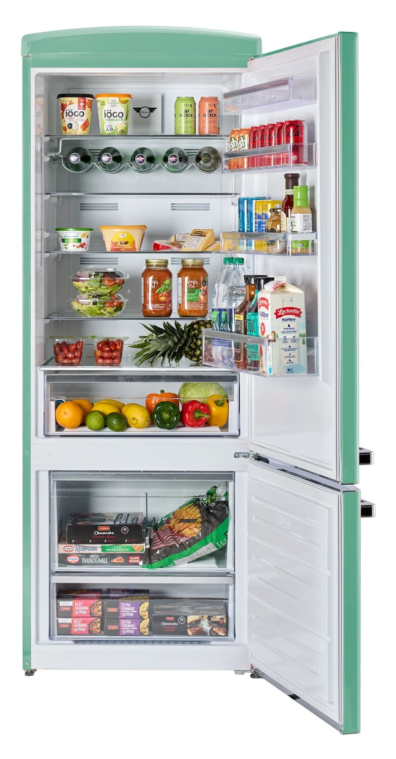 Retro Styled Top Freezer Refrigerator: Adjustable Glass Shelves: Frost-Free Cooling: Efficiency Modes: ENERGY STAR® Certified: Wine Rack Storage: |