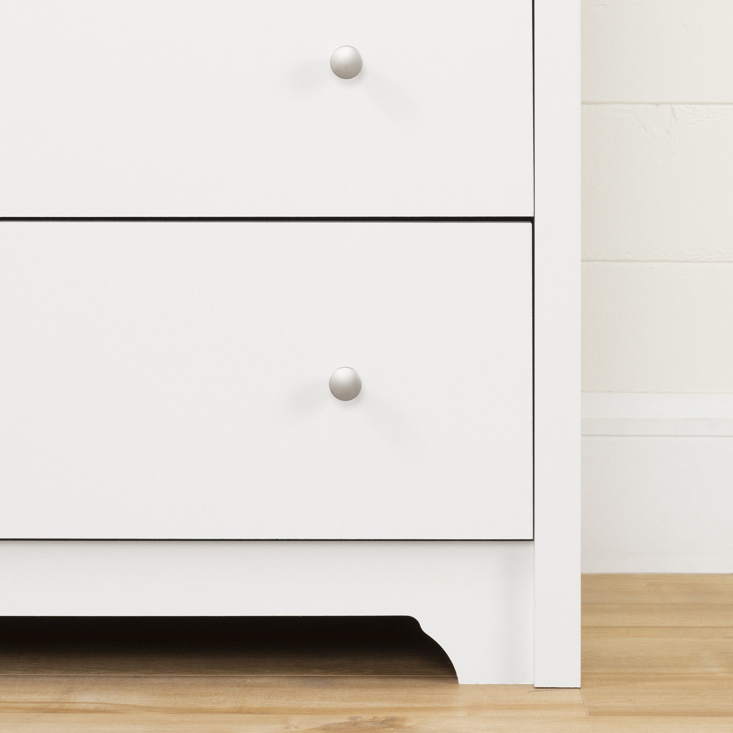 Contemporary lines and finish. With its six drawers, adorned with pretty round metal handles, and its decorative kickplate, this dresser is a happy blend of minimalist and functionality. Moreover, it will meet all your storage needs. Practical storage and organization featuring 6 practical drawers with metal knobs, this dresser provides plenty of room for clothes, linens or general storage. The versatile style of this dresser can be used in many bedrooms decor.