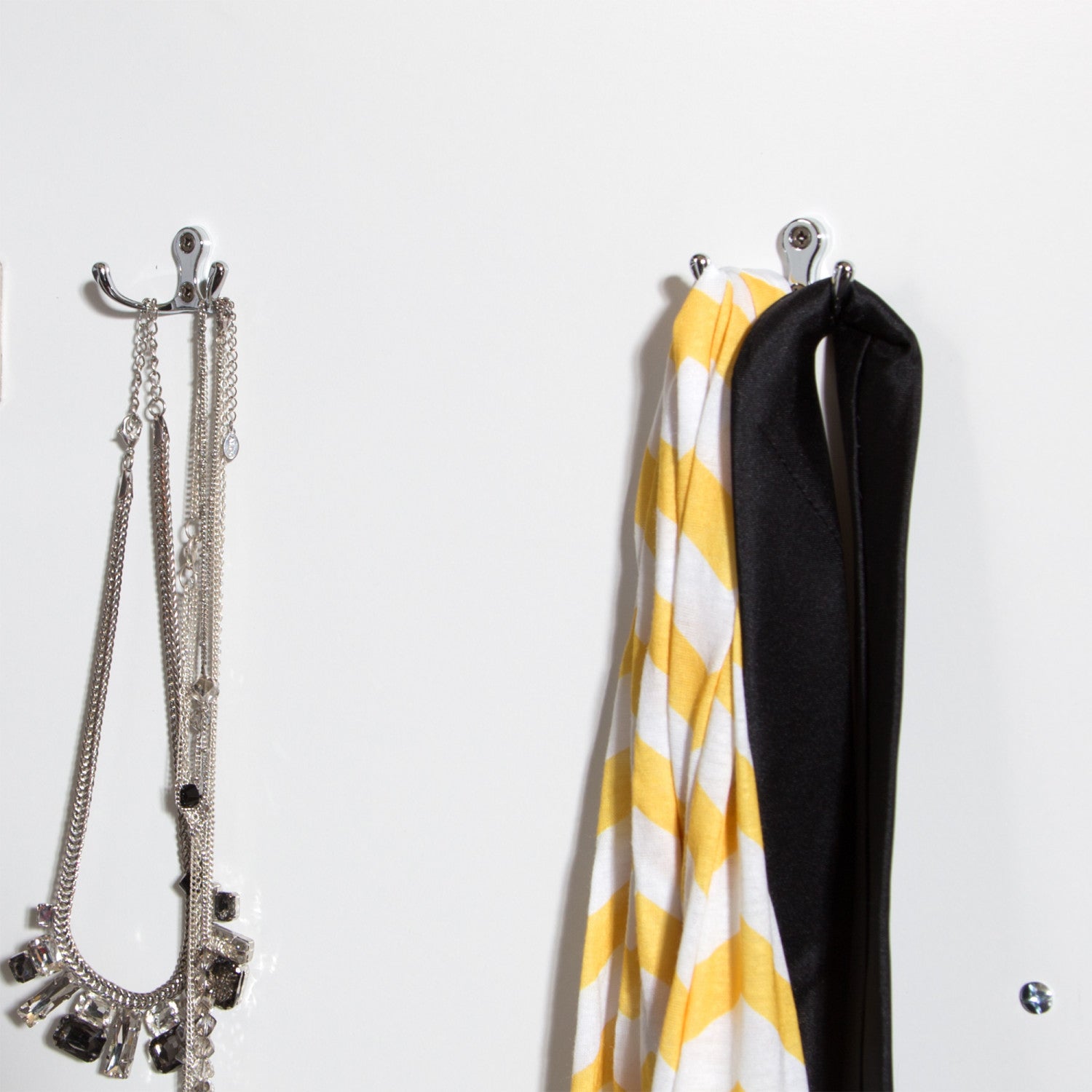 A piece you can put anywhere. The classic style of this piece masks its original configuration. The straight lines, carefully worked cutout, and small metal handles give it a delicate, polished look. This chest, with its versatile design, will easily fit into a contemporary or eclectic decor. It’ll be hugely useful for putting away things while keeping your living room or bedroom organized, so your home will have an inviting ambiance. Optimized storage this piece gives you the best of both worlds, with its cabinet, shelves, hooks, and drawers. Keep your clothes in the five drawers, place baskets on the five shelves, and hang scarves, belts, or other types of neckwear on the two hooks behind the door. What’s more, you can decide the height of each row, since the three shelves are adjustable. There’s also a hole for passing cords through in back of this piece, so you can plug in your electronic devices!