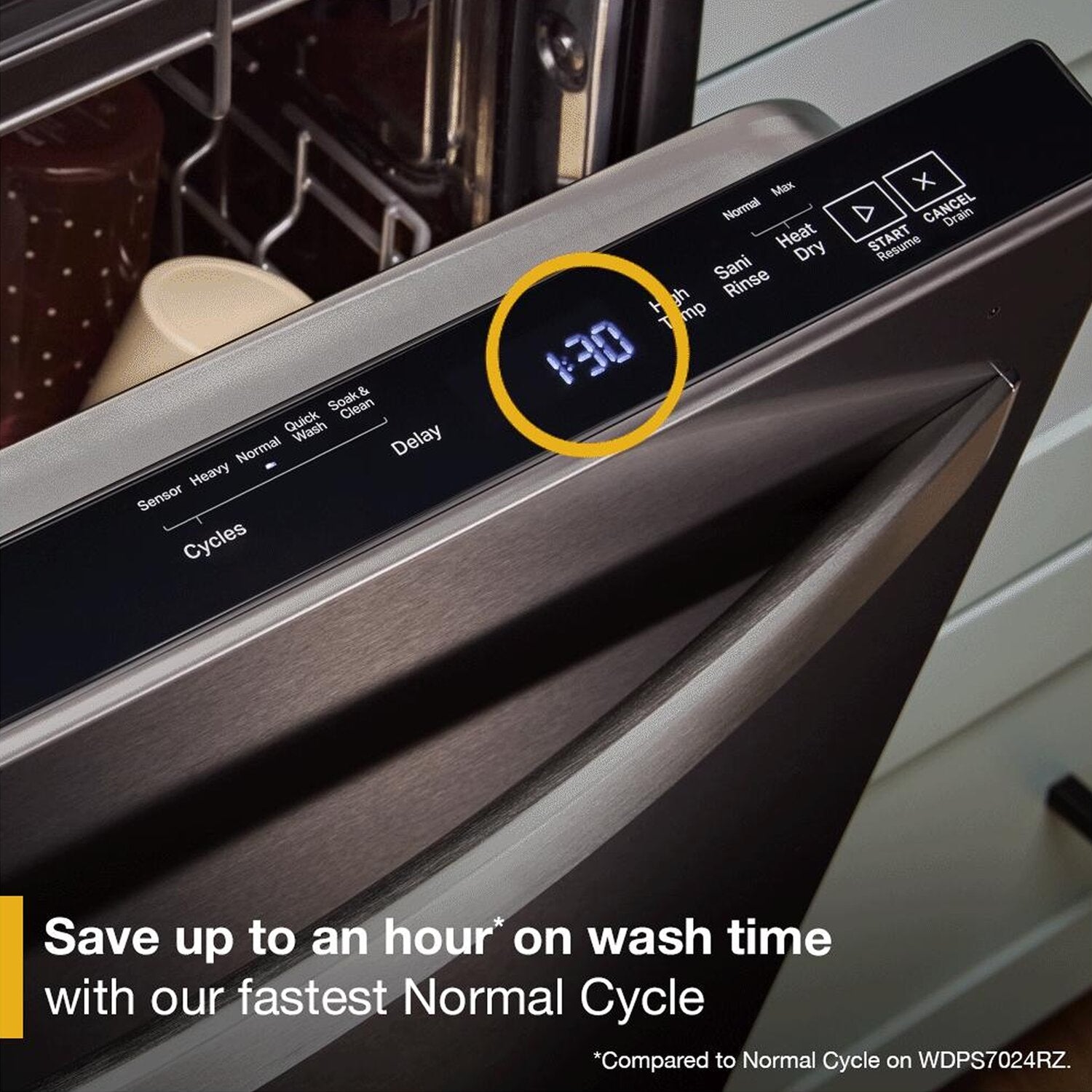 Handle everyday messes with this Whirlpool top control dishwasher. Total Coverage Wash targets every corner across three racks to deliver a thorough clean, while Auto Open Air Dry releases fresh air at the end of the cycle for ready-to-use dishes. A fast 90-minute cycle keeps up with busy schedules and intelligent sensors adapt settings to each load. Plus, flexible rack options make room for everything from large pots to delicate glassware. Its thoughtful design and adaptable features ensure every dish, cup and utensil fits perfectly, making cleanup effortless.
