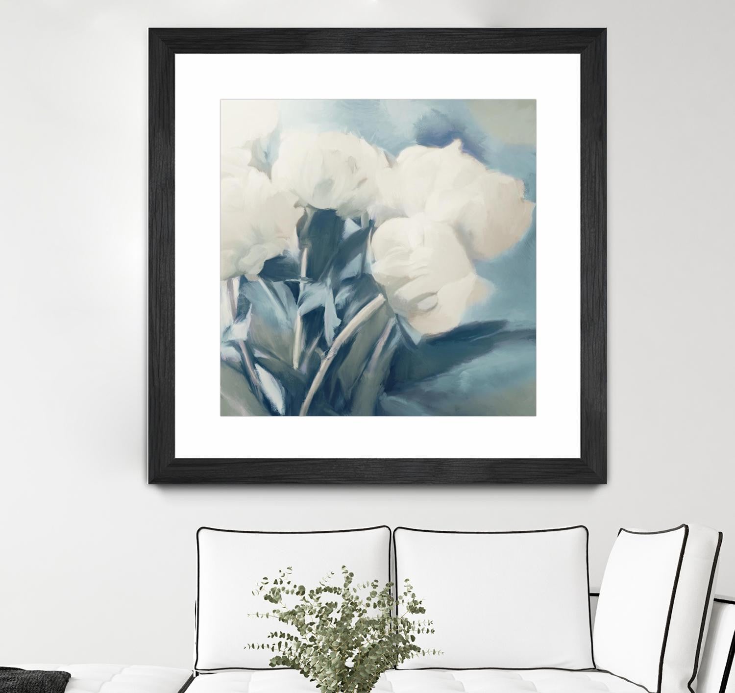 "White Roses I" Matted and Framed Black 30x30 Wall Art