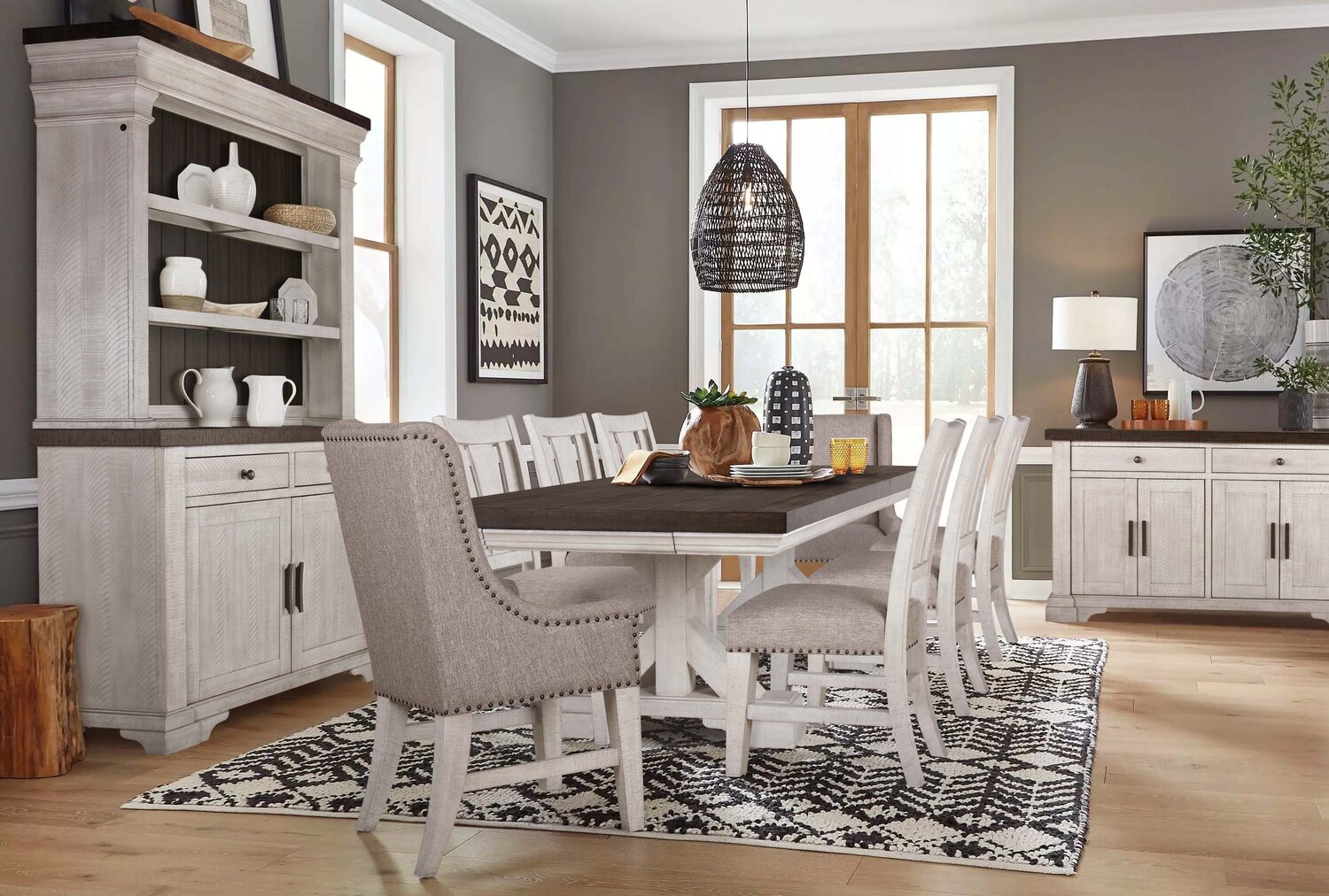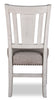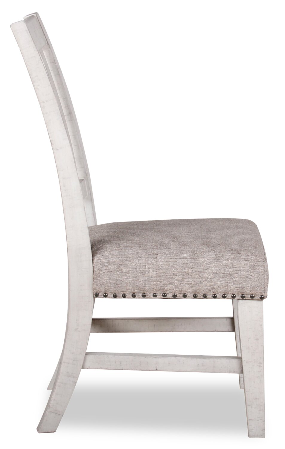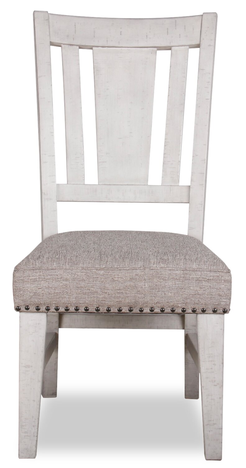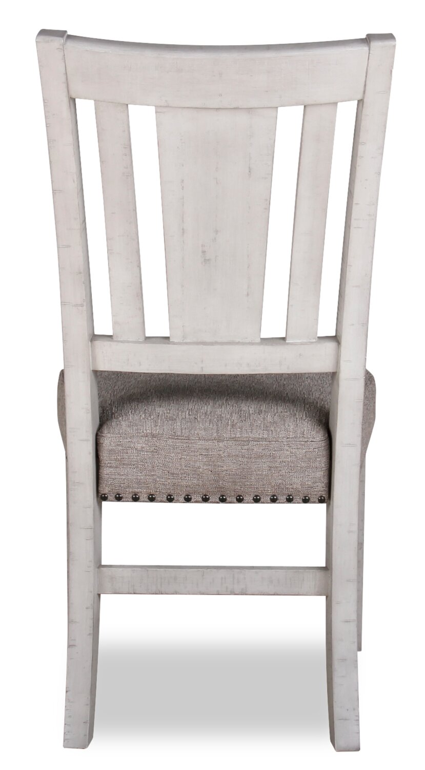 Serve up style with this Willow dining chair. Perfect for homes with a country vibe, this chair adds rustic charm to your dining room. The neutral white and brown hue is sure to complement a variety of home decor, while foam cushioning offers up an extra-comfortable spot for meals big and small. Plus, the nail head trim detailing adds a touch of modernity to your space. Pair it with the rest of the Willow dining collection (sold separately) for a complete set up and enjoy family feasts, seasonal favourites and more with the Willow.