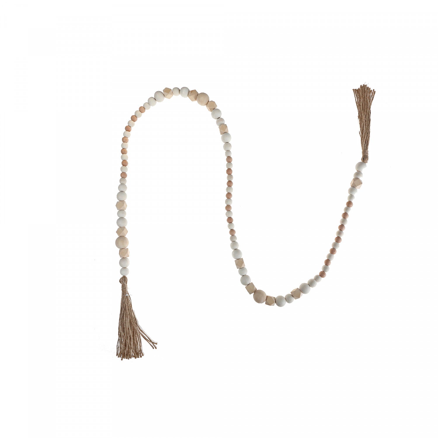 Wood Natural Beaded Garland with Tassels