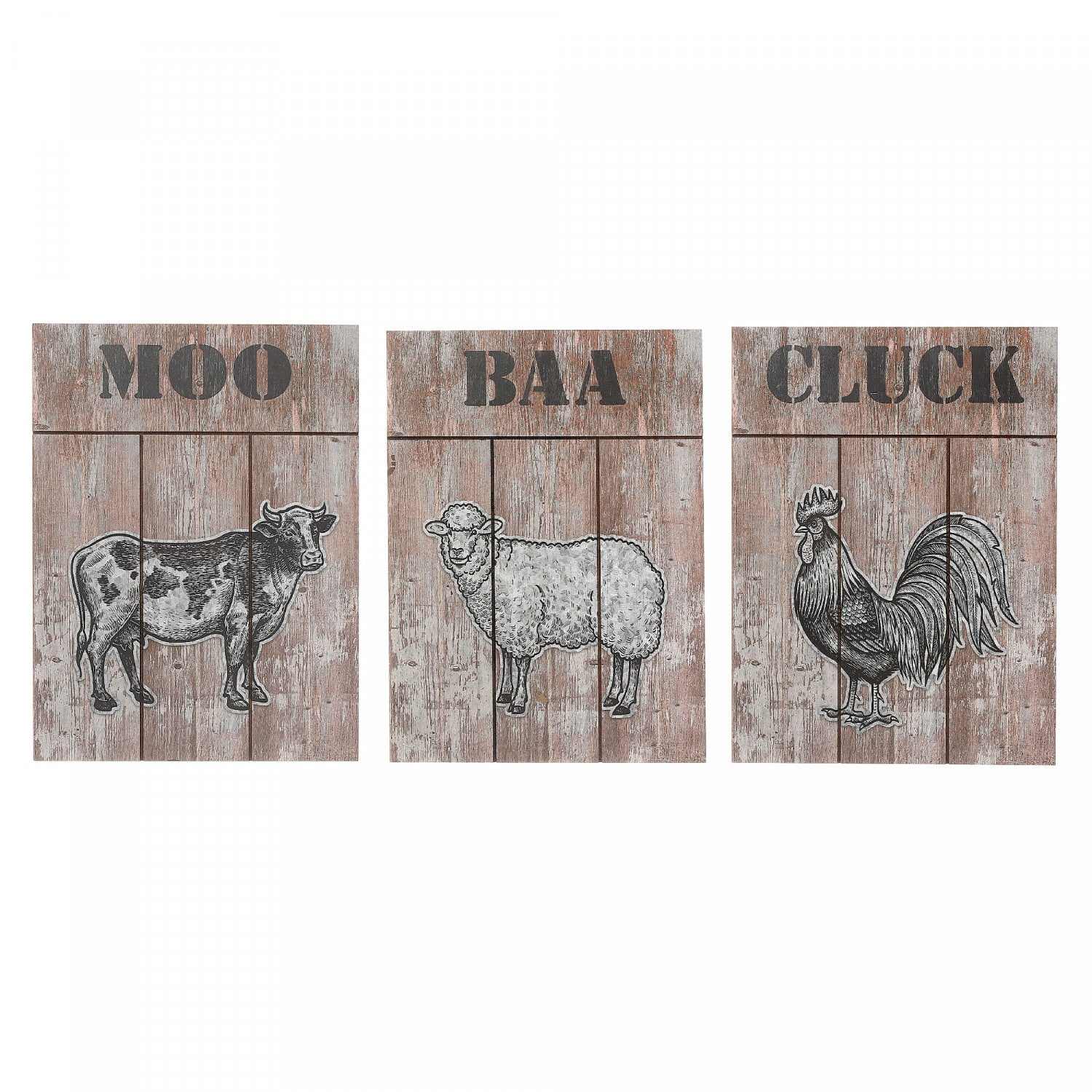 Wood Farm Animals Wall Sign with Metal Accents - Set of 3
